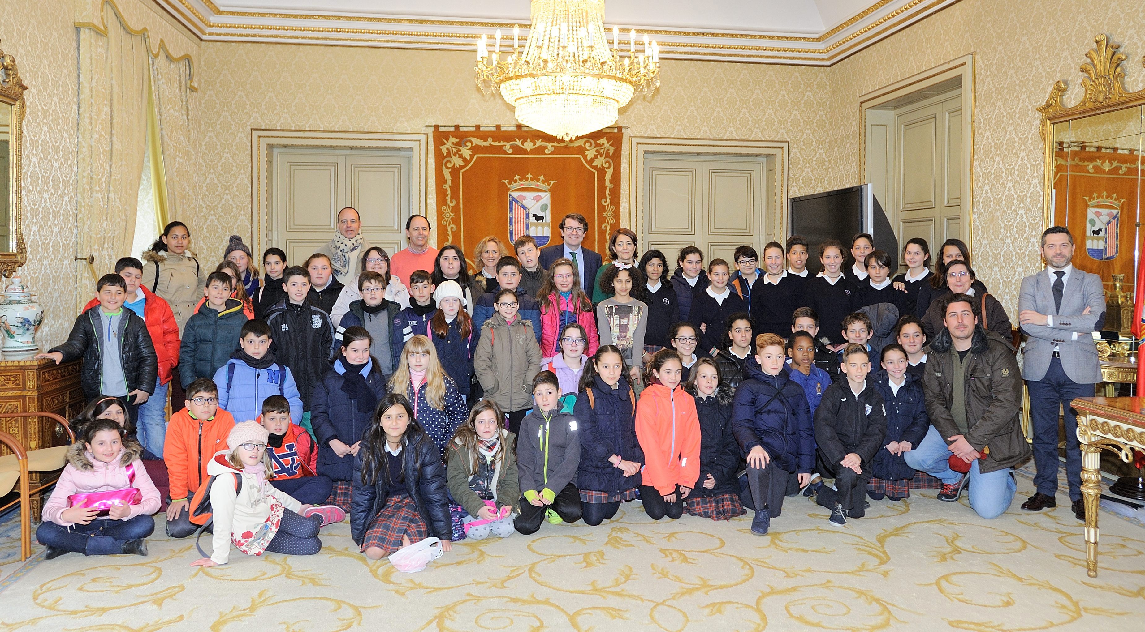 El alcalde de Salamanca, Alfonso Fernández Mañueco, acompañado del concejal de Turismo, Julio López Revuelta, ha recibido esta mañana en el Salón de Recepciones del Ayuntamiento a un grupo de alumnos de quinto de Educación Primaria del CEIP Virgen de Guadalupe de Úbeda. Estos escolares han participado en el programa pedagógico “Aula de Patrimonio”, puesto en marcha por el Grupo de Ciudades Patrimonio de la Humanidad de España en el año 2013.