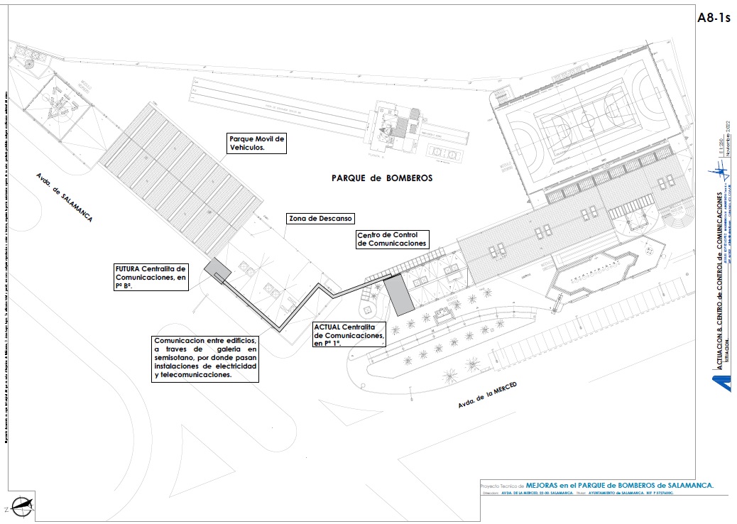 Finalmente, se proyecta acometer el traslado de la centralita de comunicaciones a la planta baja del Parque Móvil de Vehículos para mayor operatividad; la renovación del pavimento en el Parque Móvil de Vehículos; la renovación del aislamiento e impermeabilización en la zona de descanso y en el Centro de Control de Comunicaciones; el refuerzo perimetral de la impermeabilización existente en cubiertas transitables, en el helipuerto y en la pista polideportiva exterior; y el desmontaje y montaje de placas fotovoltaicas existentes en la cubierta del Parque Móvil de Vehículos.