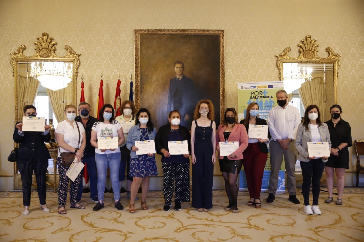 La concejala de Familia e Igualdad de Oportunidades, Ana Suárez Otero, y la representante de ‘Esla Formación SL’, Renata López Prada, han entregado hoy los diplomas del itinerario formativo ‘Competencias Clave: competencia matemática N2’, desarrollado dentro del proyecto ‘Por + Salamanca’, e impartido por ‘Esla, Centro de Formación, SL’.