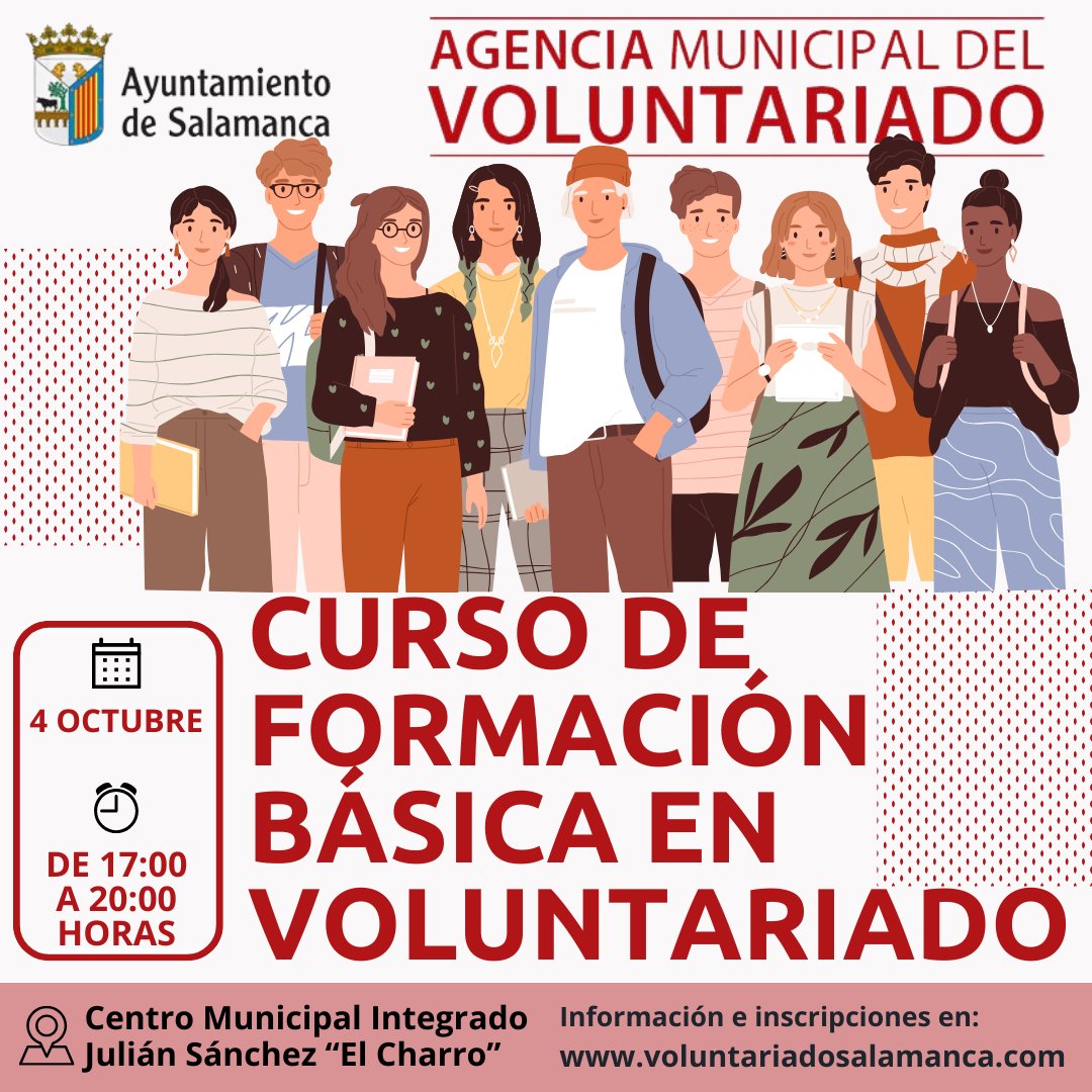 El Ayuntamiento de Salamanca continúa desarrollando actividades de formación para canalizar la creciente solidaridad de la población salmantina en distintos ámbitos de voluntariado. El Centro Municipal Integrado Julián Sánchez ‘El Charro’ acoge hoy un curso gratuito de formación básica en voluntariado dentro de la programación de la Agencia Municipal del Voluntariado.