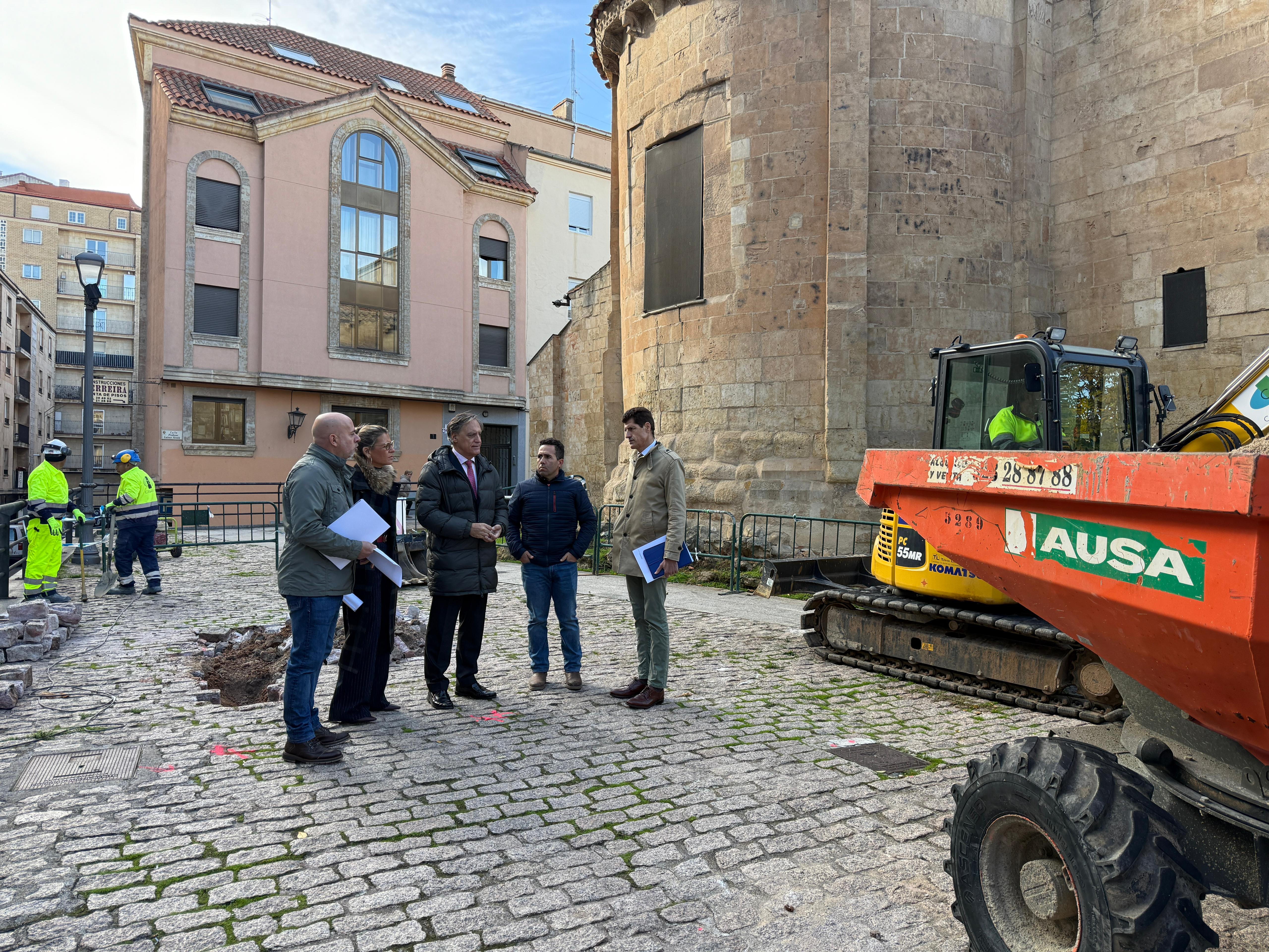 El alcalde de Salamanca, Carlos García Carbayo, ha visitado hoy las obras de renaturalización que ha comenzado en las plazas de San Cristóbal, a la que se suman las de Bretón, San Román, Santa Clara y entornos. Este proyecto está incluido en el Plan Extraordinario de Sostenibilidad Turística, con una inversión total de 167.671,20 euros con financiación del Plan de Recuperación, Transformación y Resilencia- Cofinanciado por la Unión Europea-Next Generation.