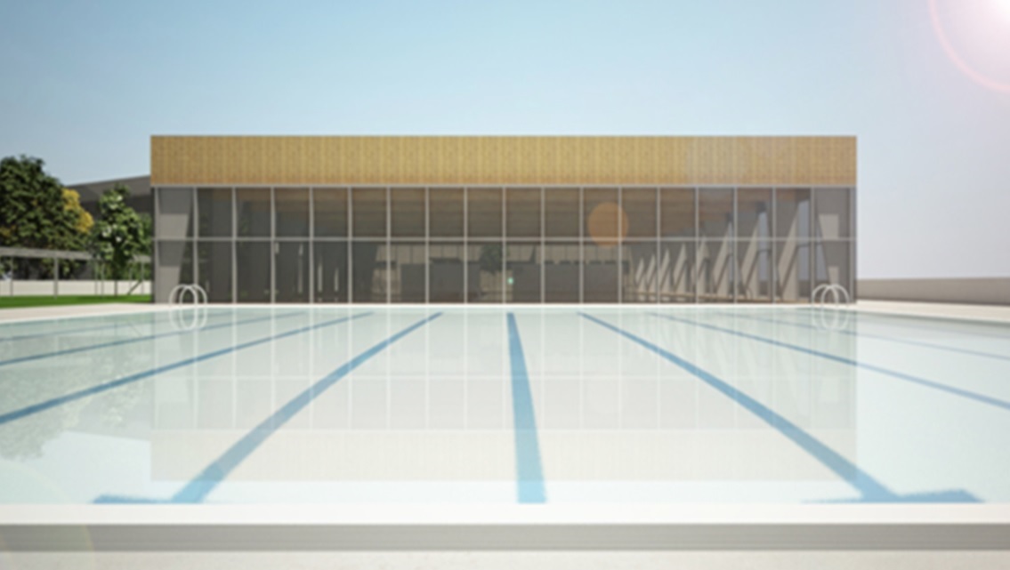 La cubrición de la nueva piscina, por otro lado, se ha definido en madera de vista y contará con un cierre perimetral acristalado y comunicado con el edificio actual, permitiendo la convivencia entre la nueva arquitectura y la ya existente.
