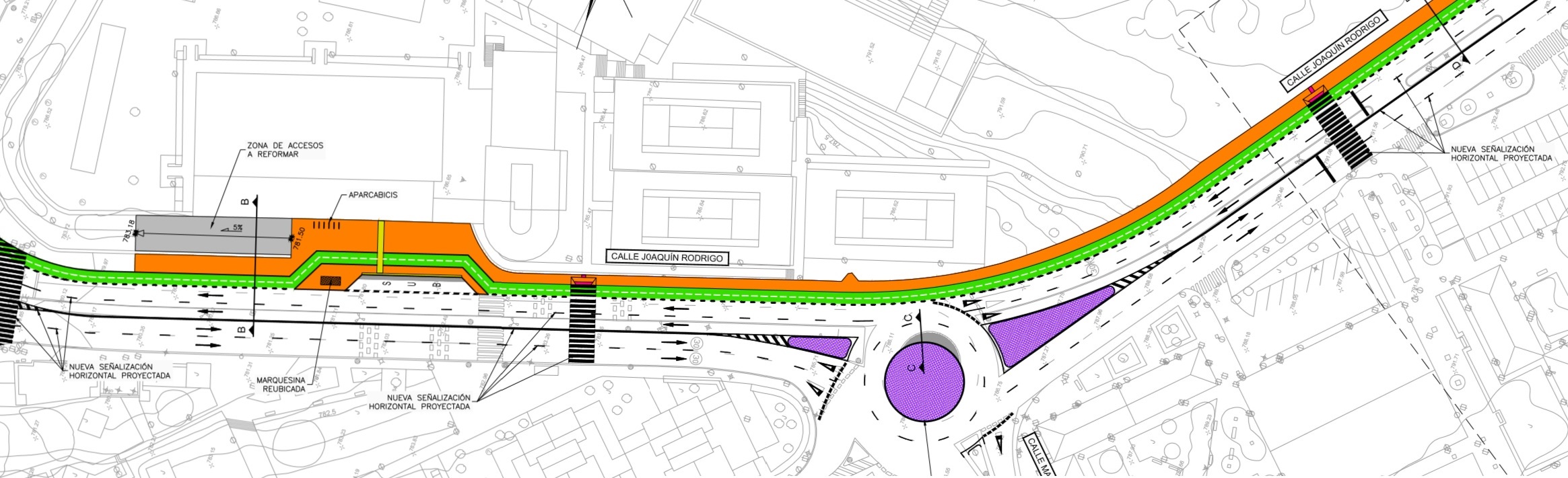 Todo el carril bici circulará por el lado izquierdo de la vía existente en la actualidad, eliminándose la mediana central y trasladando los carriles de vehículos hacia el lado derecho de manera que sigan quedando los cuatro actuales, dos de ida y dos de vuelta.
