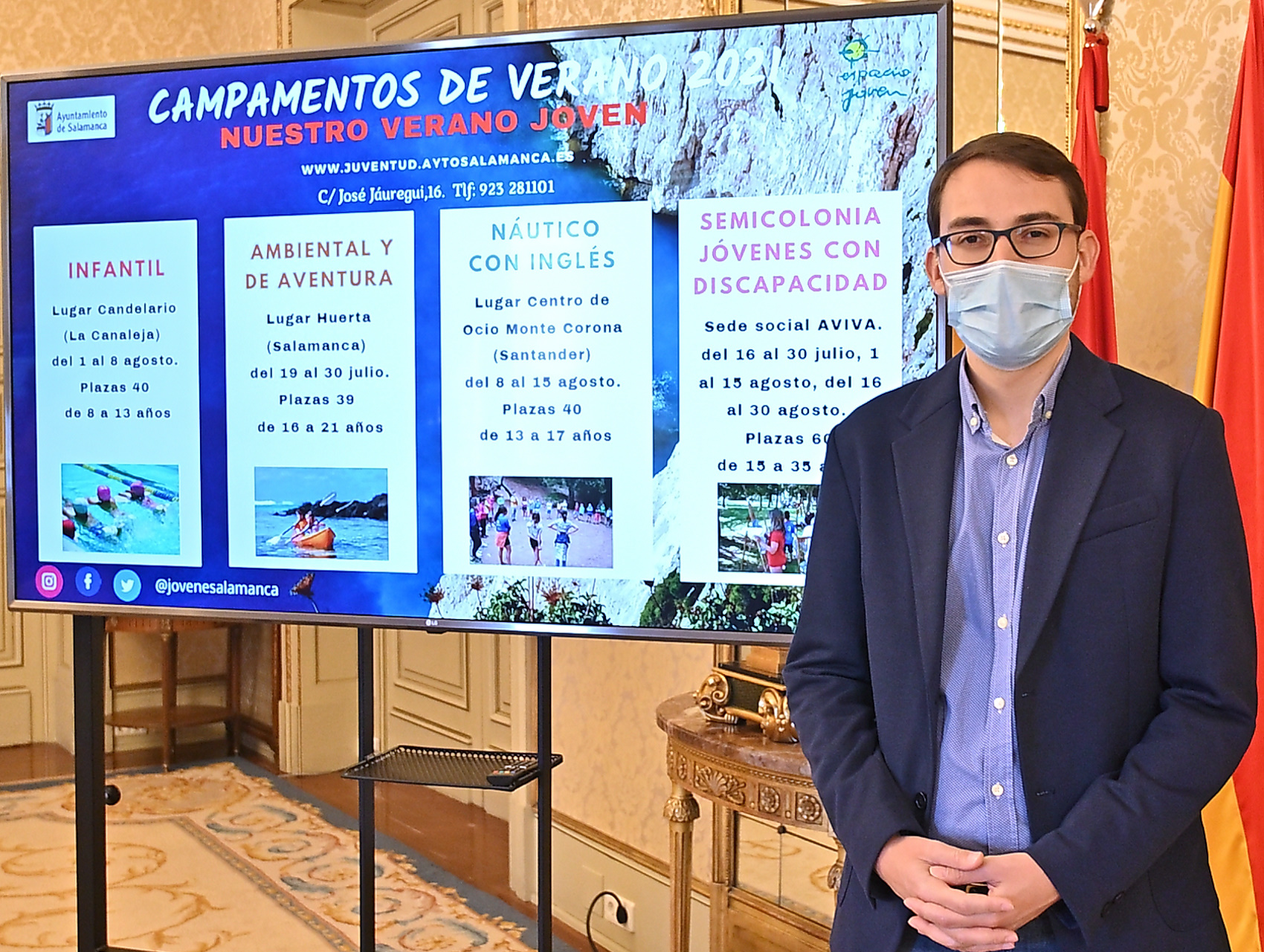 El Ayuntamiento de Salamanca ofrecerá un total de 209 plazas para niños y jóvenes de 8 a 35 años dentro del programa ‘Verano Joven 2021’, que ha sido presentado en la mañana de este jueves por el concejal de Juventud en el Consistorio, Ángel Fernández Silva.