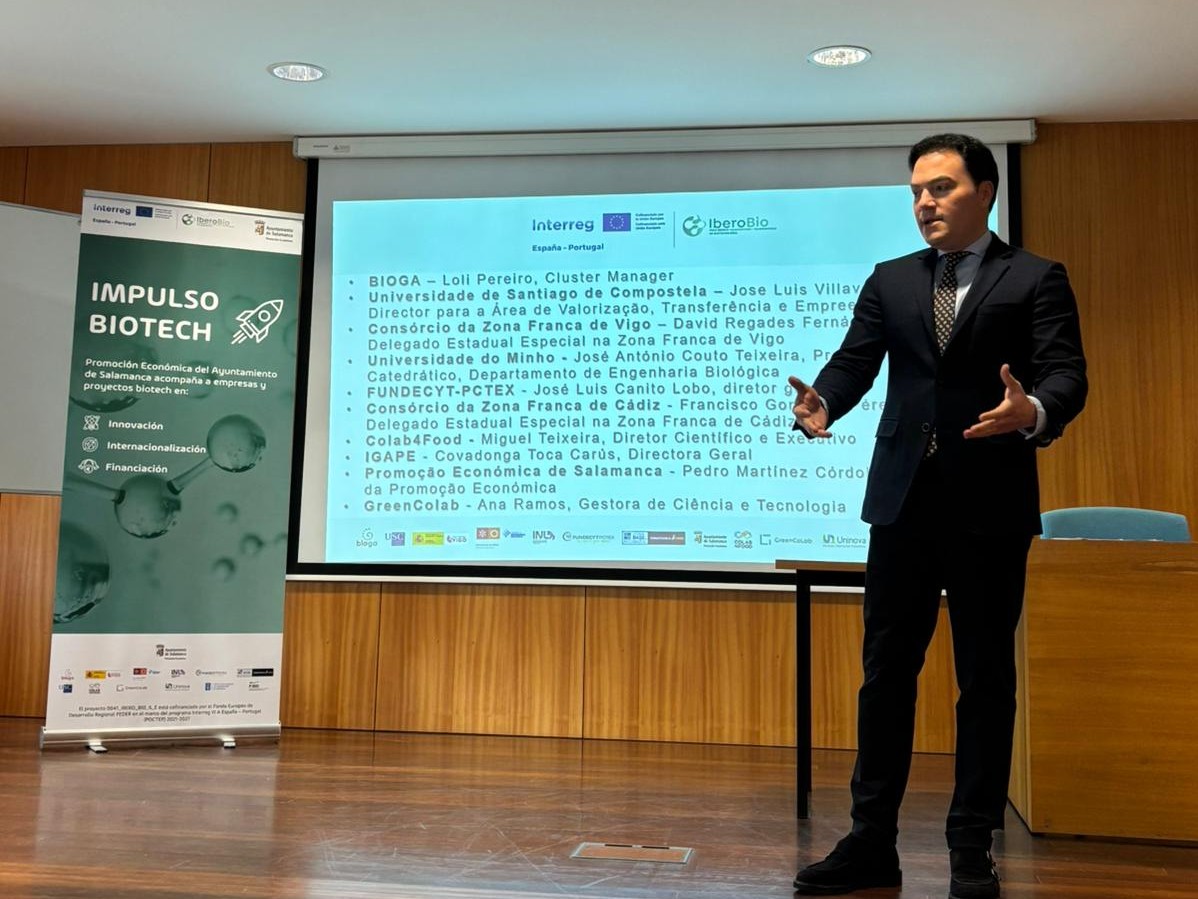 El Ayuntamiento de Salamanca, a través de la Incubadora de Empresas Biosanitarias (Abioinnova), ha reforzado hoy su posicionamiento en la innovación y la tecnología durante la sesión de clausura del proyecto europeo IberoBio, que se ha celebrado en el Auditorio de la Facultad de Ingeniería de la Universidad de Minho, en Braga (Portugal). El concejal de Promoción Económica, Pedro Martínez, participa en este encuentro que pone fin a tres años de cooperación transfronteriza entre entidades españolas y portuguesas.