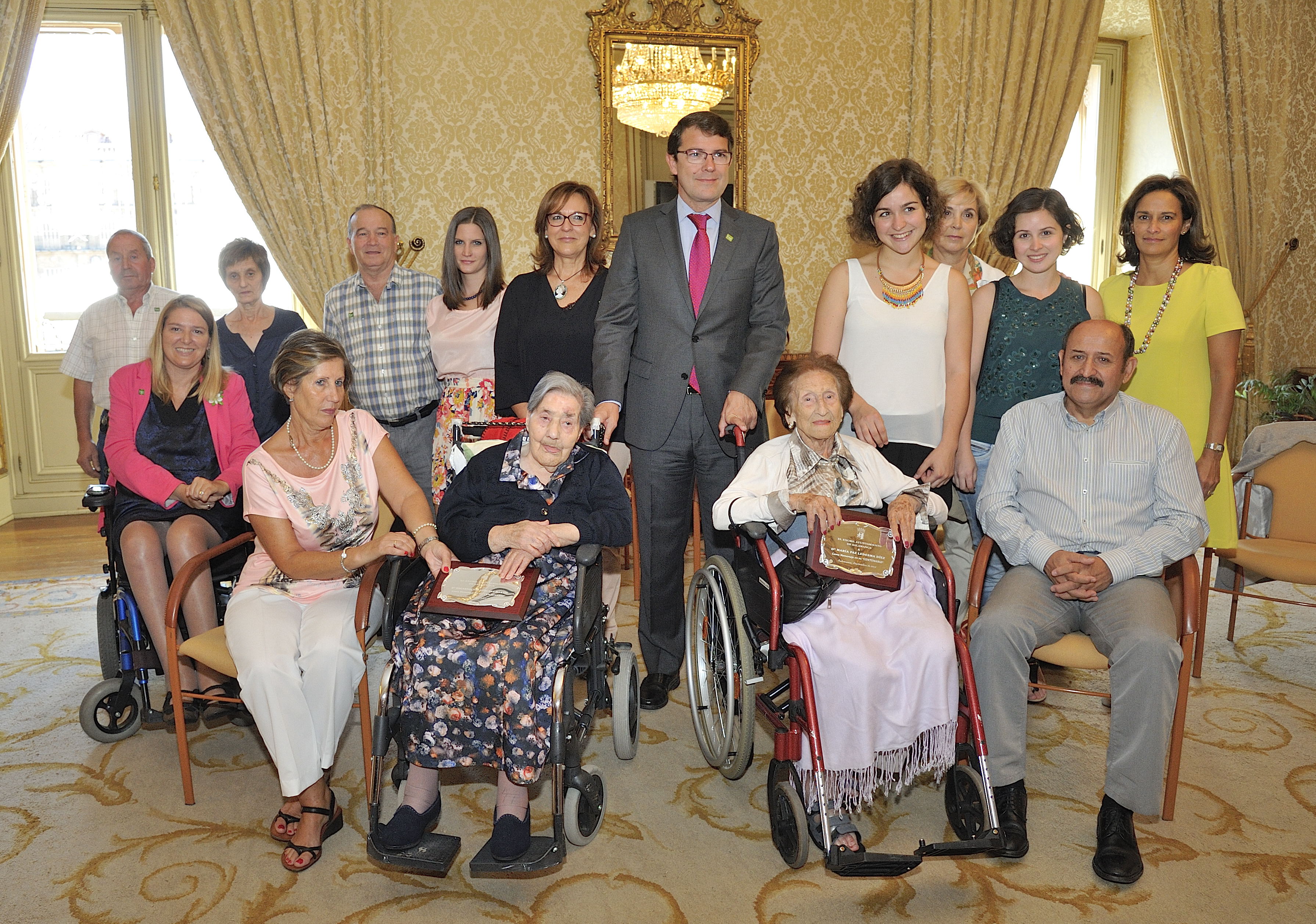 El alcalde de Salamanca, Alfonso Fernández Mañueco, ha entregado esta mañana una placa conmemorativa a dos salmantinas centenarias en el transcurso de un emotivo acto de homenaje con motivo de la celebración de las Ferias y Fiestas en honor a la Virgen de la Vega.