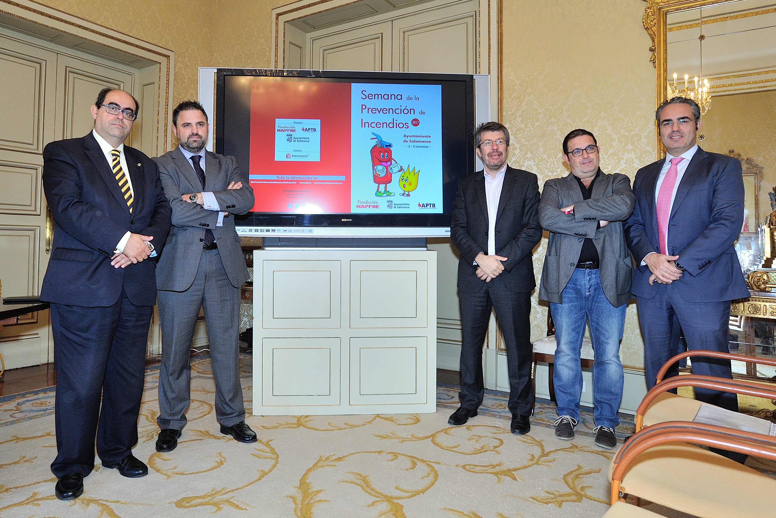 Un total de 35 servicios de bomberos de toda España se unen este año para poner el foco de atención en la formación, factor clave a la hora de prevenir un incendio y salvar la vida en caso de fuego, según han destacado esta mañana el concejal de Protección Ciudadana del Ayuntamiento de Salamanca, Fernando Rodríguez, el coordinador de actividades del área de Prevención y Seguridad Vial de Fundación MAPFRE, Antonio García y el director gerente de la Asociación Profesional de Técnicos de Bomberos (APTB), Gabriel Muñoz, durante la presentación de la Semana de la Prevención de Incendios.