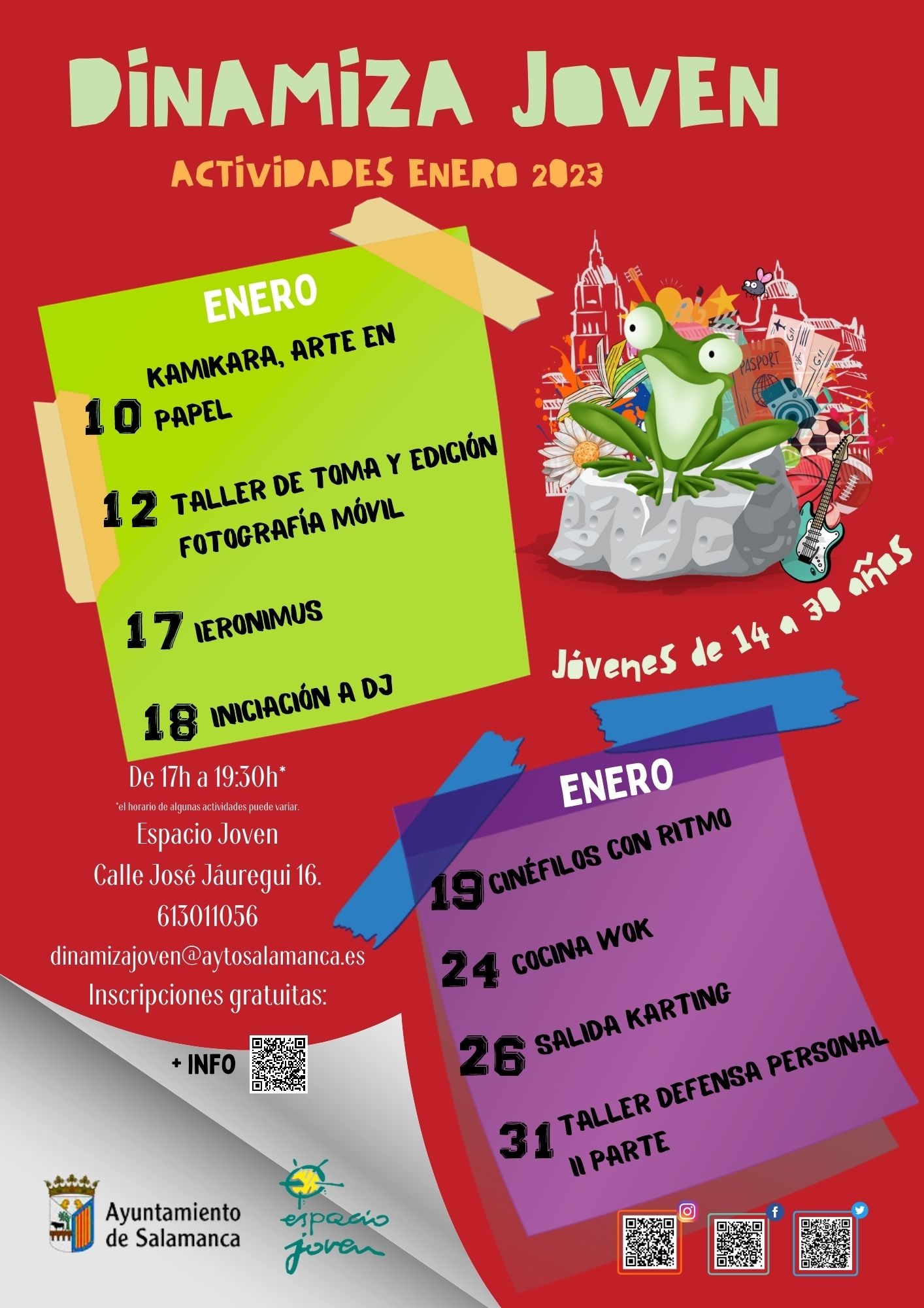 El Ayuntamiento de Salamanca oferta nuevas actividades del programa municipal de ocio juvenil y saludable ‘Dinamiza Joven’ con el objetivo de procurar una ocupación positiva del tiempo libre de los jóvenes.