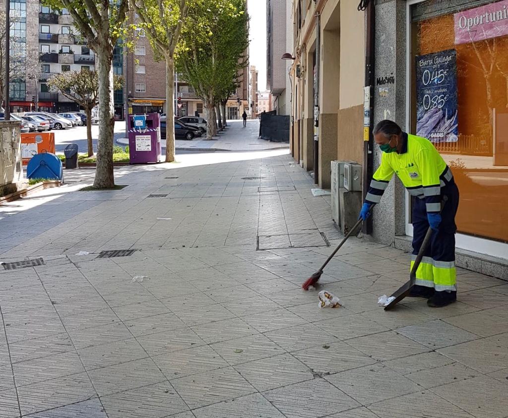El Ayuntamiento de Salamanca lleva a cabo de forma diaria labores de desinfección de la ciudad con el objetivo de minimizar el riesgo de contagio de coronavirus, al tiempo que desarrolla las correspondientes labores de limpieza de las calles y plazas. Debido a la proliferación de guantes en suelo del entorno de los supermercados, el Consistorio ha reforzado el servicio municipal de limpieza.