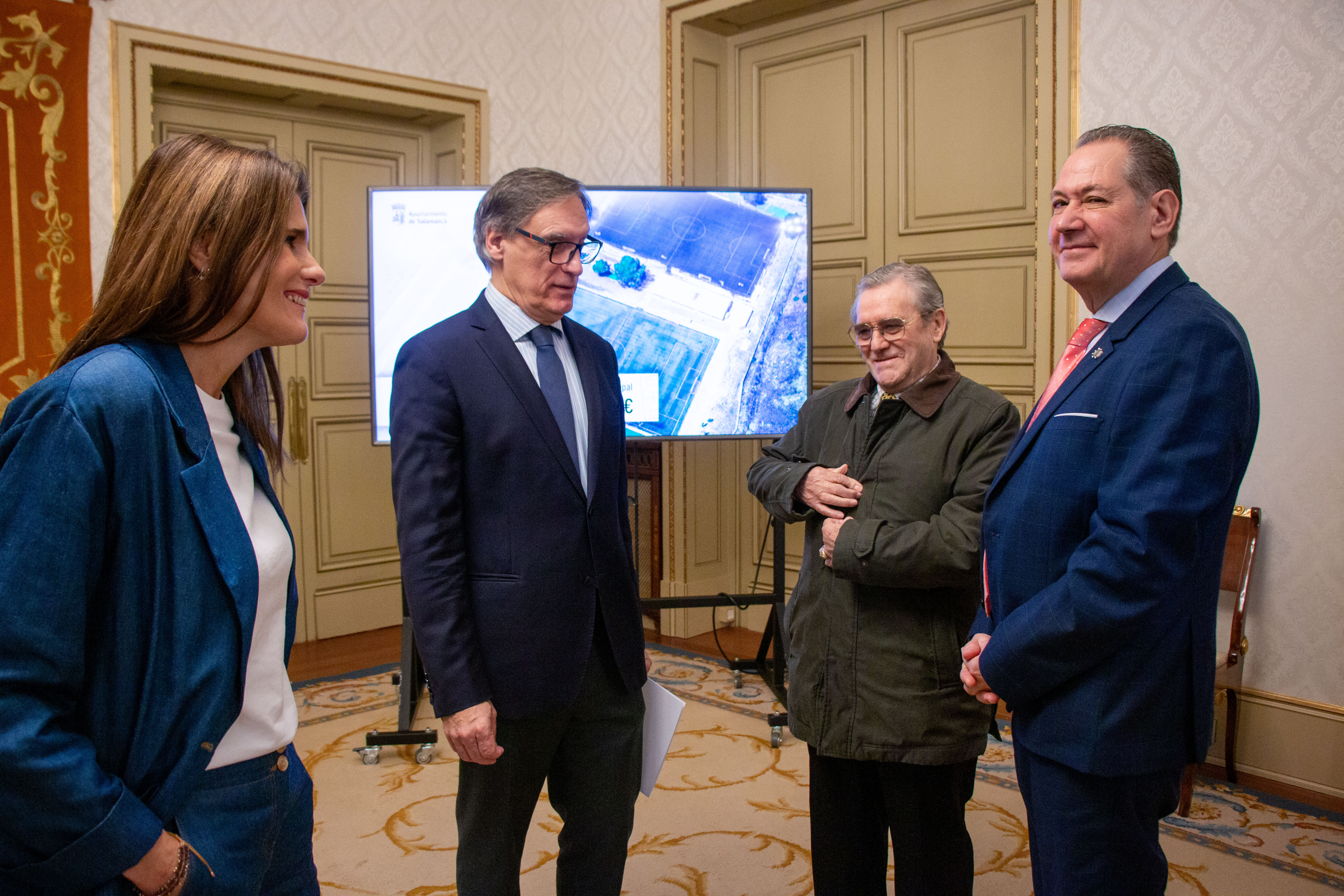 En primer lugar, García Carbayo explicó que el campo de fútbol Nemesio Martín ‘Neme’ se verá ampliado gracias a la cesión por parte de la Universidad de Salamanca (USAL) de un terreno de 380 metros cuadrados de la parcela donde se asienta la Residencia Colegio Mayor San Bartolomé, que posibilitará la disputa de partidos en la categoría de Regional. En cuanto a las actuaciones que llevará a cabo el Consistorio salmantino, con una inversión de un millón de euros, figuran la sustitución del césped artificial, la instalación de nuevo vallado, incluyendo malla parabalones, y la ampliación hasta cuatro del número de vestuarios más el de los árbitros.