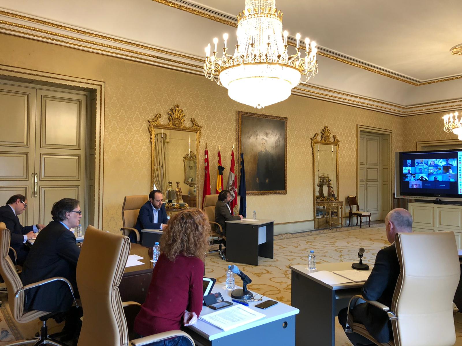 Así lo han manifestado ambas partes durante una videoconferencia que ha tenido lugar hoy y en la que, por parte del gobierno municipal, han estado presentes el alcalde, Carlos García Carbayo, la primera teniente de alcalde, Ana Suárez, el tercer teniente de alcalde, Fernando Rodríguez, y los concejales de Promoción Económica y Comercio, Fomento, y Turismo, Juan José Sánchez, Daniel Llanos y Fernando Castaño, respectivamente.