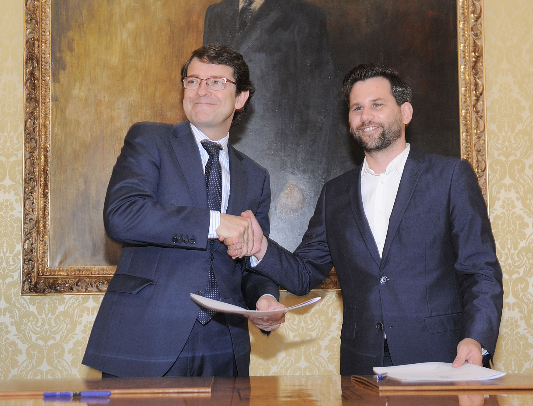 El Gobierno Municipal del PP y Ciudadanos acuerdan un plan de cuarenta medidas para alcanzar cotas históricas en participación y transparencia en la ciudad de Salamanca. Así lo han anunciado hoy en rueda de prensa el alcalde, Alfonso Fernández Mañueco, y el portavoz de Ciudadanos, Alejandro González Bueno, quienes han destacado que es un documento de trabajo que se enriquecerá con las propuestas de las personas de Salamanca, asociaciones, organizaciones, instituciones y resto de grupos políticos.