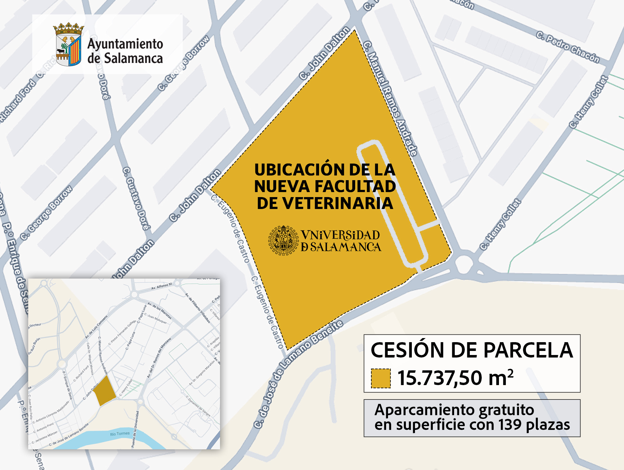 La cesión de esta parcela se suma a otras dos cedidas por el Ayuntamiento en el año 2019 en La Platina a la Universidad de Salamanca para la nueva Facultad de Ciencias Agrarias y Ambientales y al Consejo Superior de Investigaciones Científicas (CSIC) para la nueva sede del Instituto de Recursos Naturales y Agrobiología de Salamanca (IRNASA), ambas en construcción.
