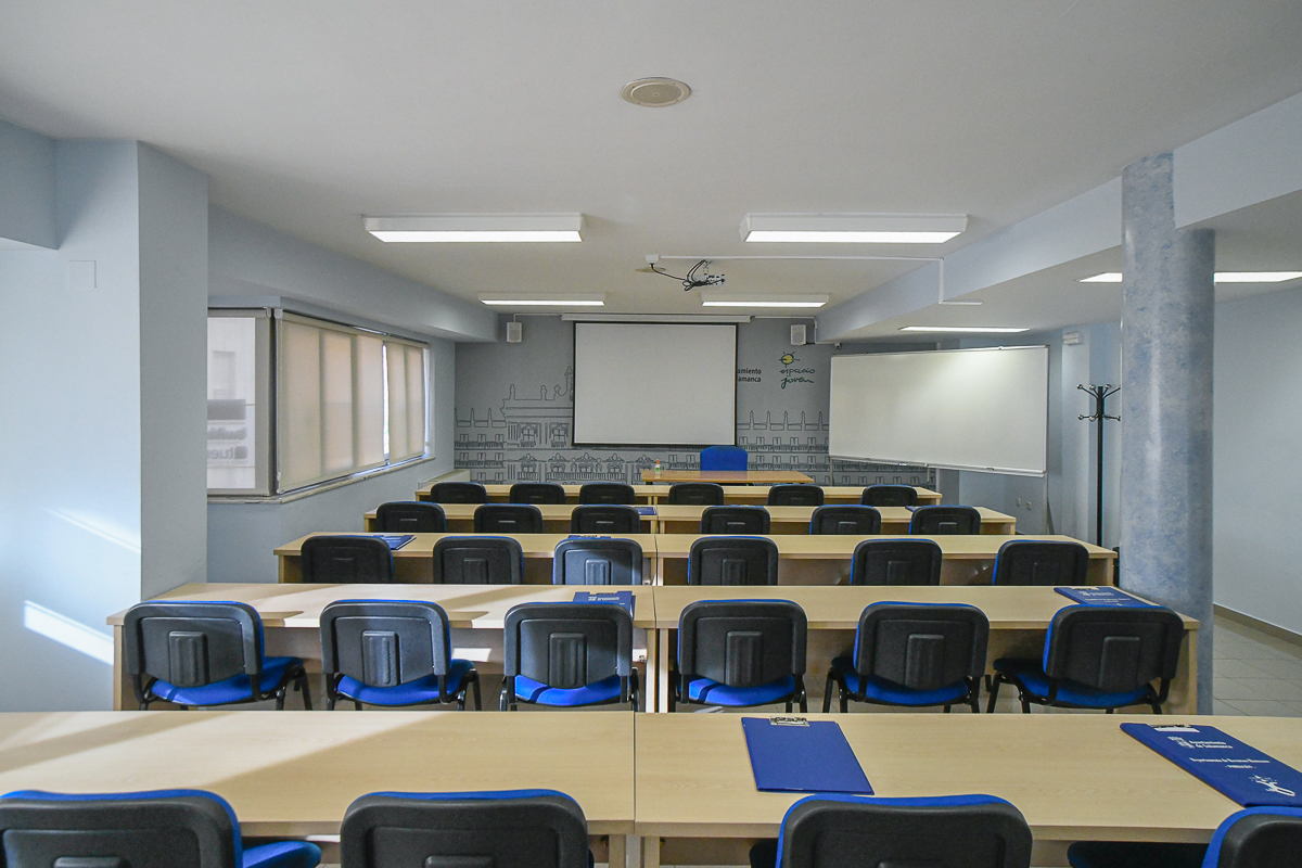 • Aula de formación: aula para la realización de cursos, seminarios, charlas, reuniones, etc., con una capacidad de 30 plazas. Cuenta con pizarra, proyector-pantalla y altavoces. Se podrá utilizar por colectivos y asociaciones, previa solicitud.