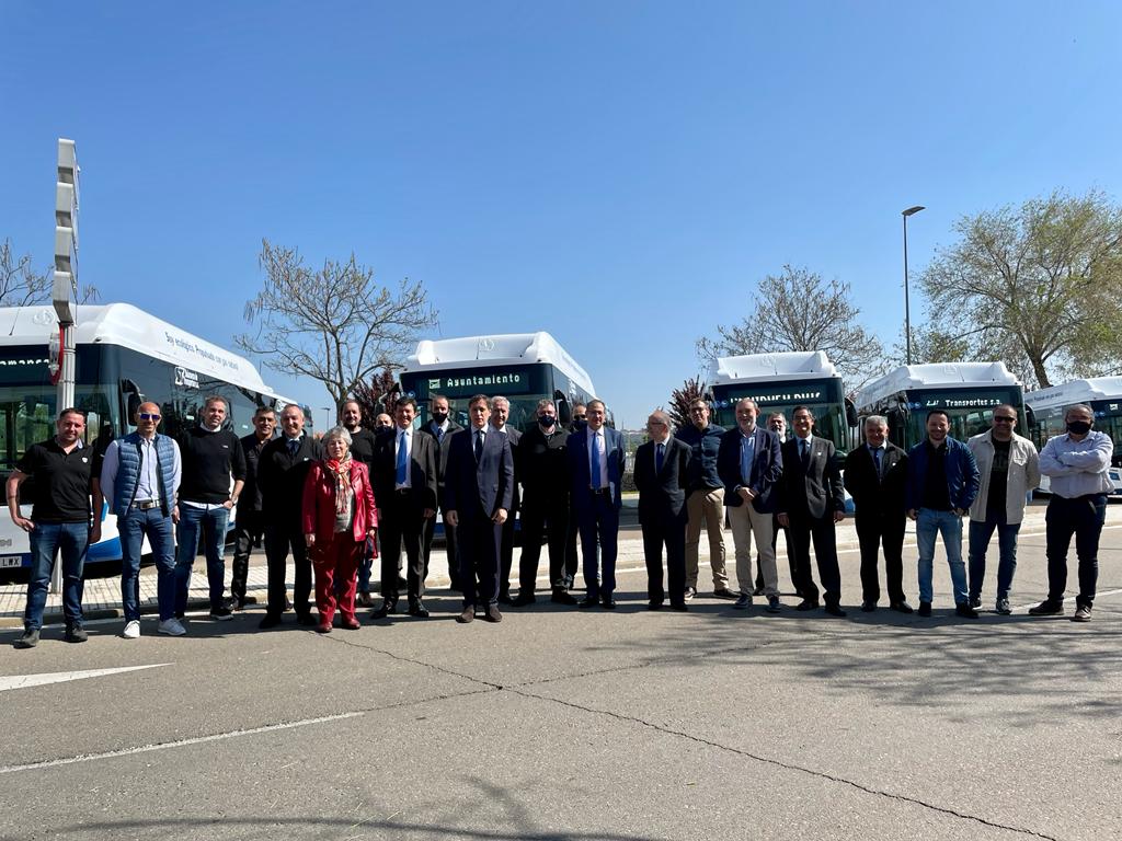 El alcalde de Salamanca, Carlos García Carbayo, ha presentado hoy los nuevos cinco autobuses que se van a incorporar a la flota del servicio municipal de transporte público, en sustitución de otros tantos que ya han alcanzado su vida útil.