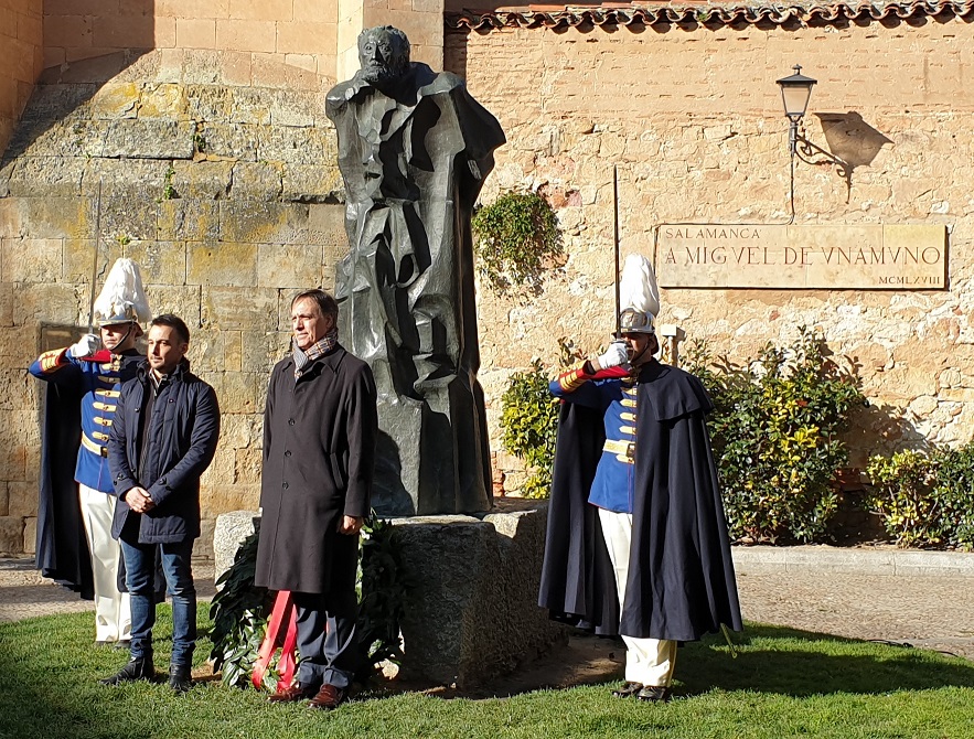 El tradicional acto de ofrenda con el que cada 31 de diciembre los salmantinos rinden homenaje al escritor, filósofo y político Miguel de Unamuno se celebrará en este 2020 con aforo limitado y con todas las medidas de seguridad sanitaria necesarias en las actuales circunstancias.