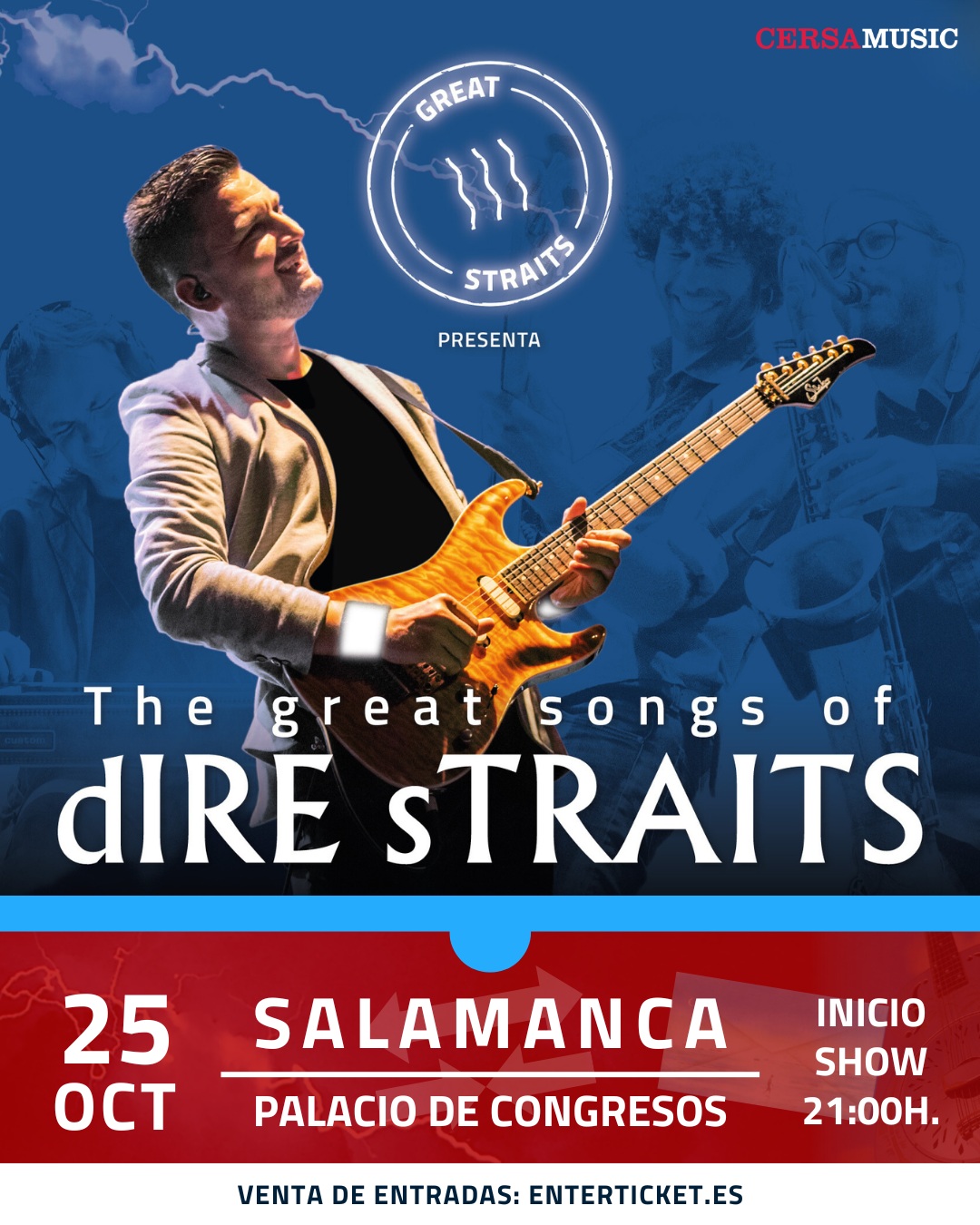 El próximo sábado, 25 de octubre, la Sala Mayor del Palacio de Congresos y Exposiciones de Salamanca acogerá el espectáculo ‘The Great Songs of Dire Straits’, un concierto tributo a la mítica banda británica encabezado por Óscar Rosende y su grupo Great Straits. La cita será a las 21:00 horas, y las entradas ya están a la venta a través de www.enterticket.es
