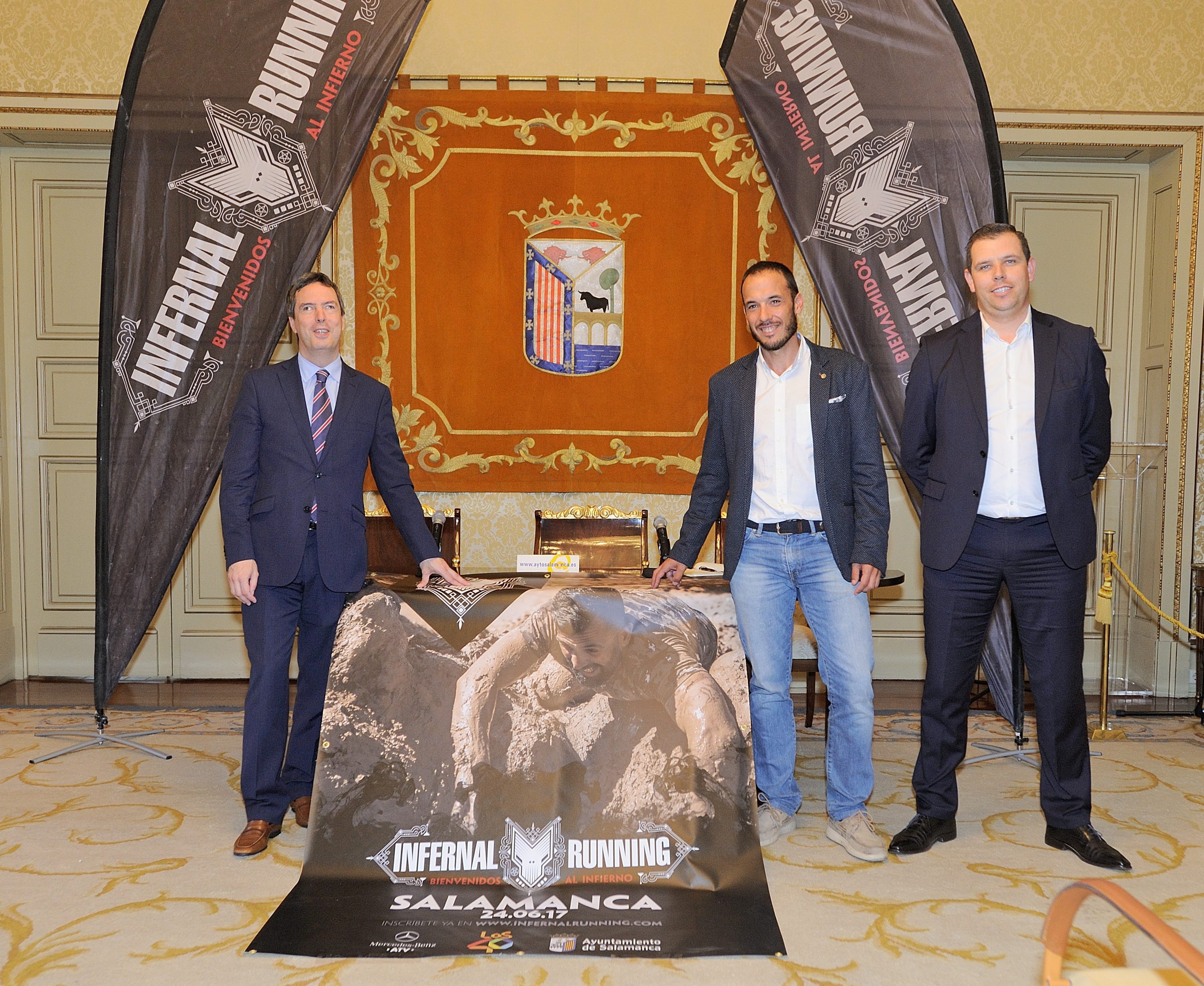 Salamanca es una de las seis localidades del conjunto de España que acogerá, en su caso el próximo 24 de junio, una de las pruebas del circuito ‘Infernal Running’. Así lo ha dado a conocer hoy en rueda de prensa el concejal de Deportes del Ayuntamiento de Salamanca, Enrique Sánchez-Guijo, acompañado de Rubén Morán Vicente, CEO de Miroevents, empresa creadora de esta cita deportiva y de otras como Farinato Race.