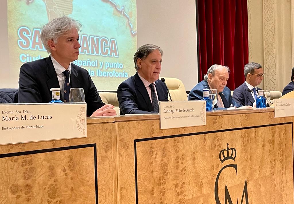 A la presentación, que se ha desarrollado bajo el título ‘Salamanca: capital del Español y punto de encuentro de la Iberofonía’, han asistido también los embajadores de Guinea Ecuatorial, Miguel Enjang; de Cabo Verde, Ney Cardoso; de El Salvador, Mauricio Peñate; y de Mozambique, Manuela Dos Santos.