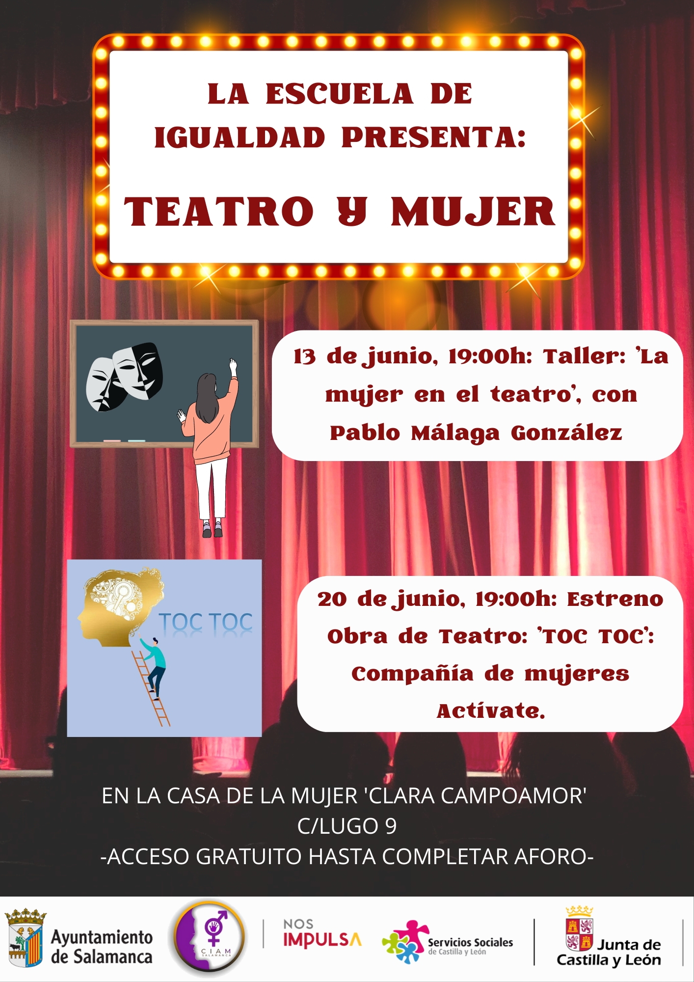 El martes 13 tendrá lugar el taller 'La mujer en el teatro' impartido por el ponente Pablo Málaga González. Este taller versará sobre la historia del papel de la mujer en el teatro, su presencia y ausencia, tratando de incidir en el hecho de rescatar del olvido la aportación de las mujeres a la actividad teatral. El taller se celebrará a las 19:00 horas en el Aula de Igualdad de la Casa de la Mujer Clara Campoamor.